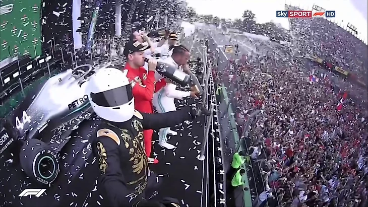 0:06 Подиум. Машина соперников рядом с Феттелем – удобно ее рассматривать, далеко ходить не надо.