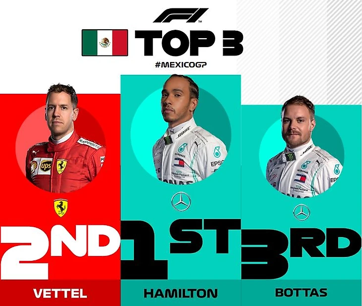 Финиш: Хэмилтон выиграл Гран-при Мексики, Феттель – второй, Боттас – третий.