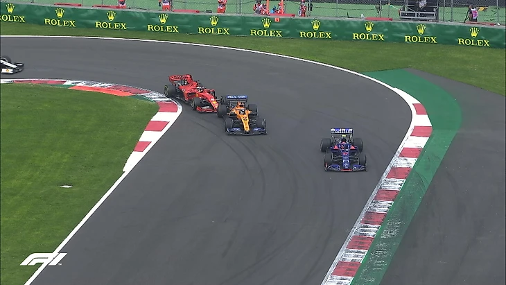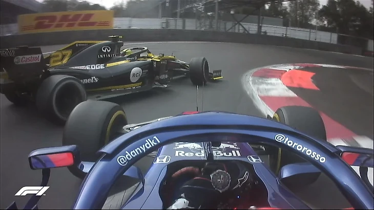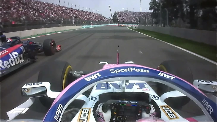 Квят же отчаянно обороняется от атак Переса в борьбе за восьмое место – но «Рейсинг Пойнт» оказывается быстрее. Трибуны в экстазе.