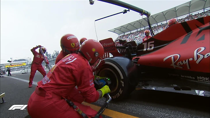 44-й круг И еще одна заминка на пит-стопе – теперь у Леклера! Пилот «Феррари» потерял около 4 секунд, вернувшись на трассу пятым.