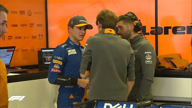 Норрис же вернулся на пит-лейн и сходит с дистанции – болид «Макларена» закатывают в боксы.