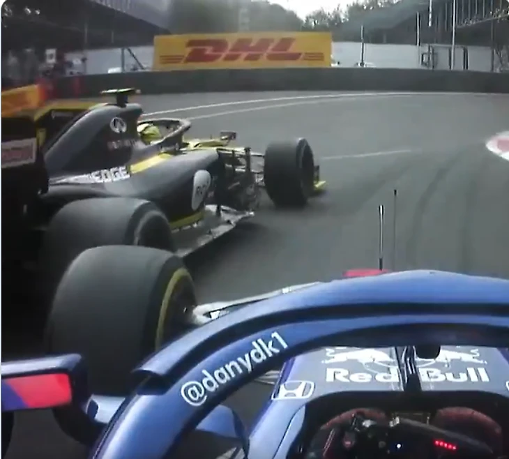 Так и вышло: №26 остался на атакующей траектории, не сбросил скорость и закономерно снес гонщика «Рено», следовавшего по обычной гоночной траектории.