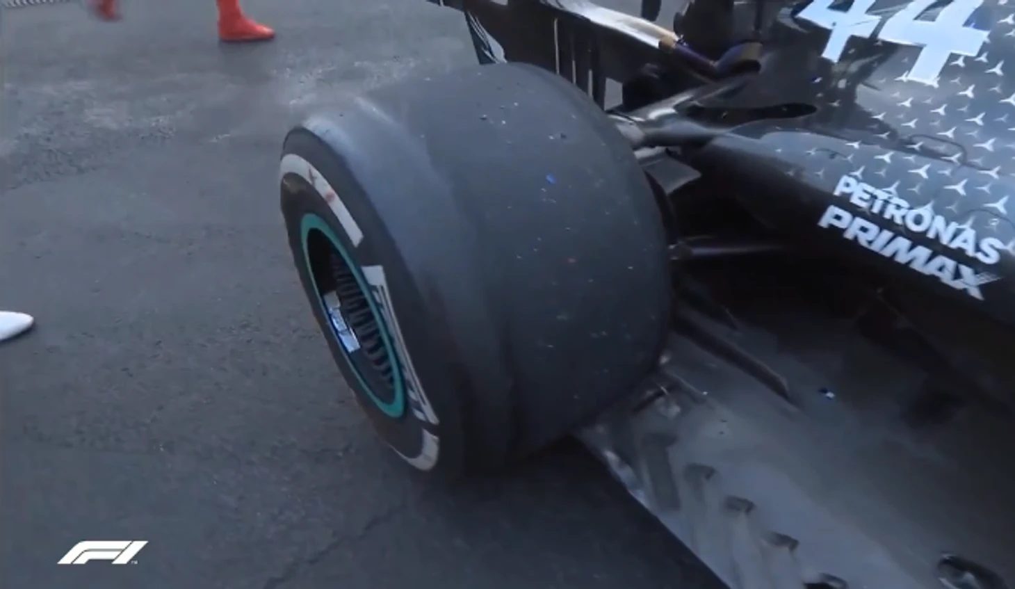 В Мексике положение оказалось диаметрально противоположным: лучики нытья полетели в уши гоночным инженерам с самом начале отрезка, а шум по поводу возможного износа оказался сильно преувеличенным. Только посмотрите на внешний вид задней правой шины с поврежденной стороны – по идее она должна была пострадать больше всех, но выглядит так, словно пригодна минимум еще для 20-30 километров.