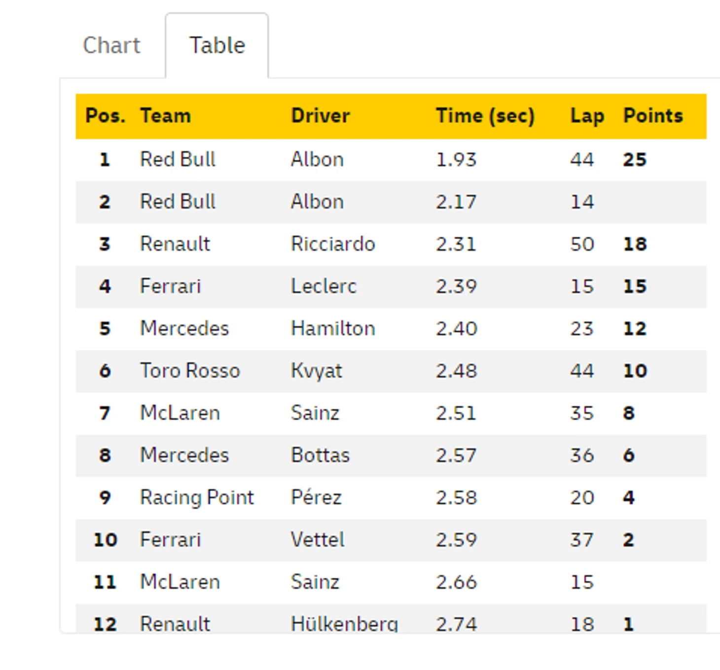 На данный момент именно бригада «Ред Булл» – сильнейшая в «Формуле-1». Только посмотрите на топ-10 быстрейших пит-стопов последнего этапа – ближайшие соперники отстали на целых 0,4 секунды!
