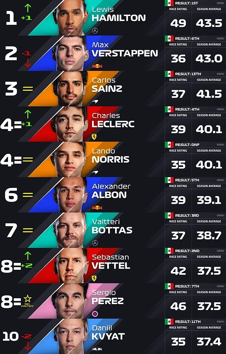 Официальный рейтинг пилотов «Ф-1» после Гран-при Мексики: впервые за 5 месяцев в серии новый №1