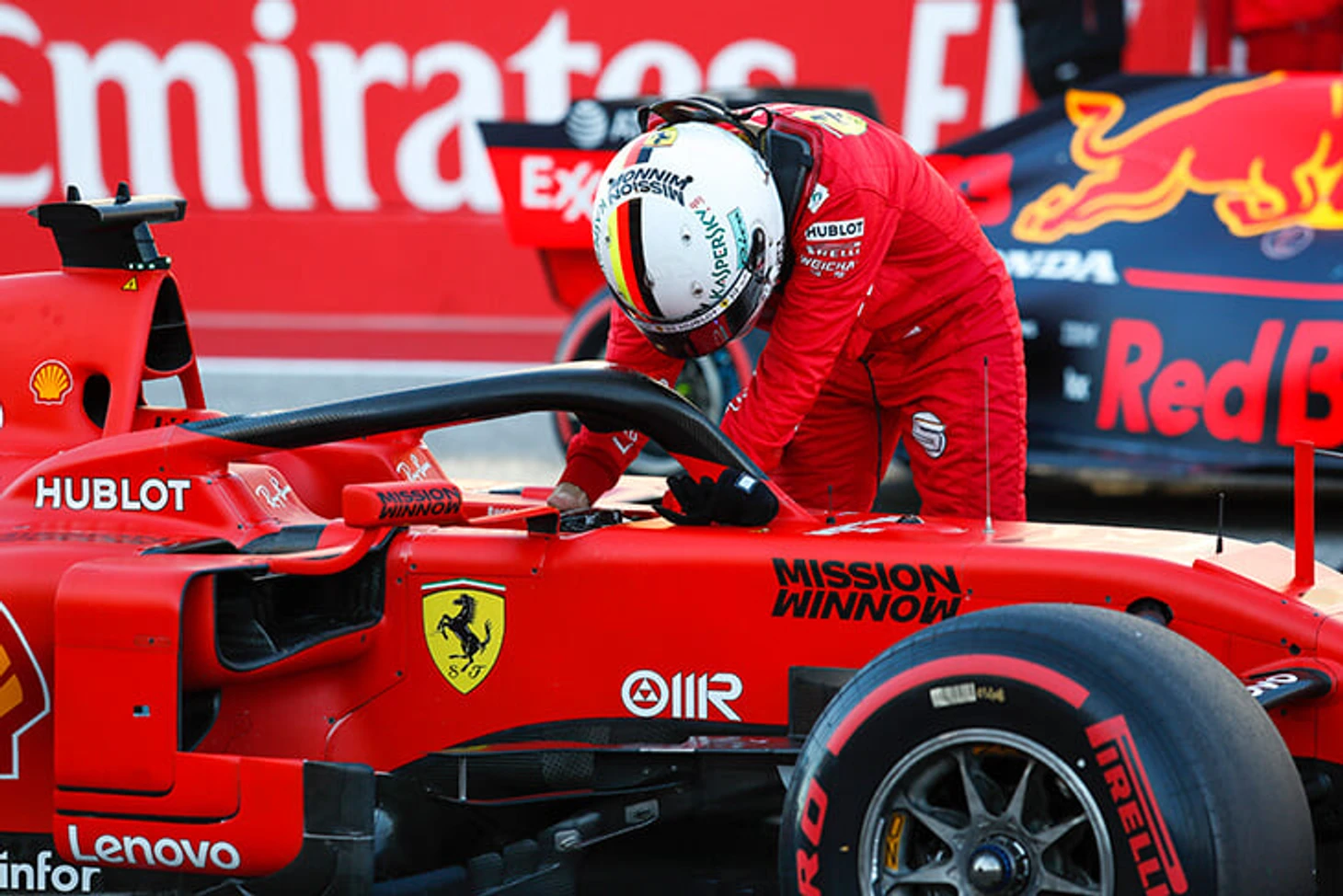 В основном заезде Скудерия и вовсе потерпела кошмарный крах: с машиной Феттеля что-то случилось с самого старта, из-за чего он свалился со второго места на седьмое, а после и вовсе сломал подвеску и сошел. Леклер же не смог удерживать заданный «Мерседесами» и Ферстаппеном темп и проиграл на финише чудовищные 52 секунды.