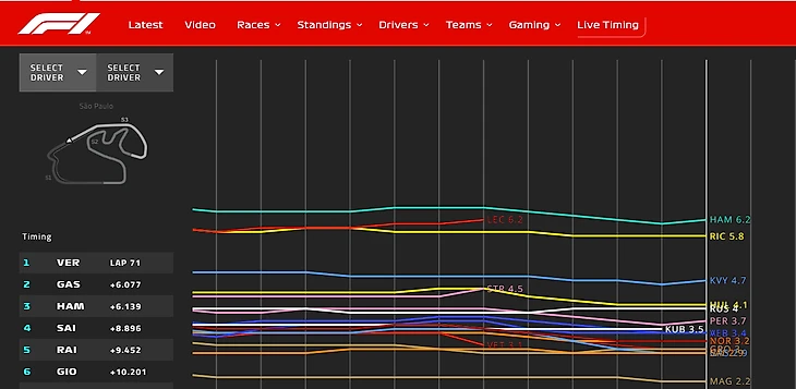 На официальном сайте «Формулы-1» в разделе лайвтайминга на странице «выступлений» появились оценки пилотам за Гран-при Бразилии, основанные на данных телеметрии.
