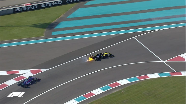 Главные заезды Гран-при Абу-Даби еще не начались, но болельщики уже увидели мегазрелищный инцидент, который хоть сейчас можно нарезать в гоночные фильмы – отказ мотора на болиде «Рено» Даниэля Риккардо.