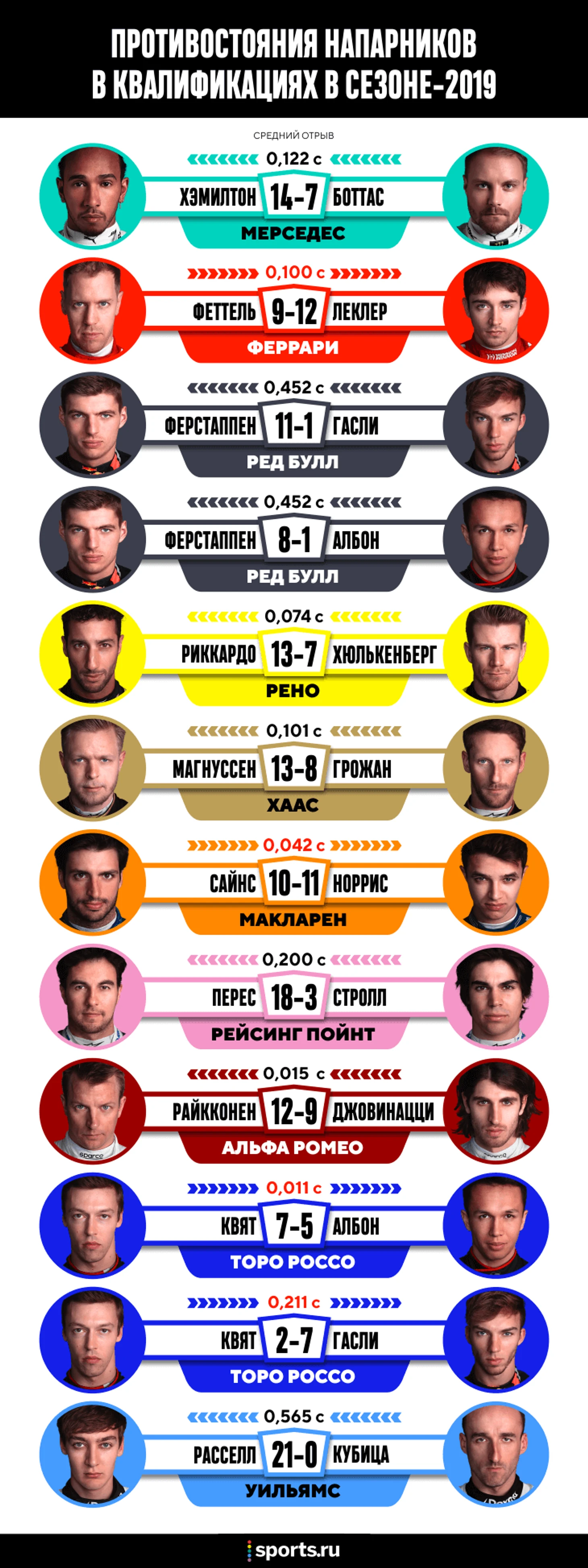 Итоги квалификационных битв напарников в «Ф-1»: Леклер укатал Феттеля, Квят уничтожен, 6 пар с разгромами