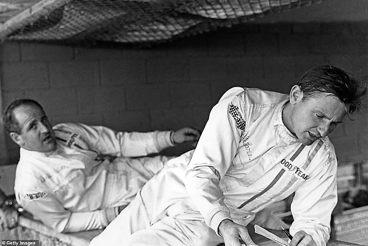 Дэнни Халм и Брюс Макларен отдыхают во время гонки - гонщики выступали за разные экипажи