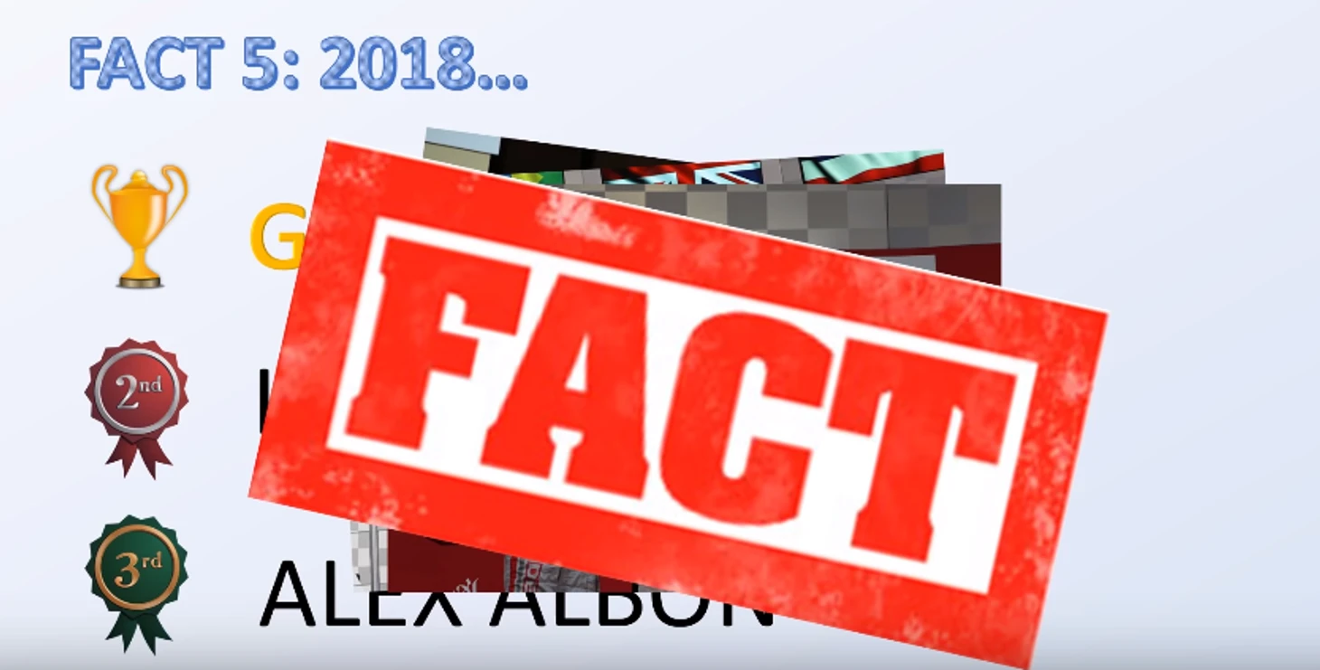 В титрах Ландо, естественно, везде указал себя, объявив Албона вторым новичком, а Расселла – третьим.