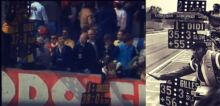 Справедливости ради стоит отметить, что версия Сэйдвика тоже вызывает вопросы. Возможно, имеется ввиду информация на табло по итогам 46-го круга, но продемонстрирована пилотам она могла быть только на 47-м круге, так как механики выдавали информацию по позициям, временам и отрывам с "пингом" в один круг. Если же пит-боарды были вывешены по окончанию 46-го круга, то на первой позиции с командой «Slow» должно было висеть имя Жиля, хотя по факту он шел вторым. И это внесло бы еще большую сумятицу.