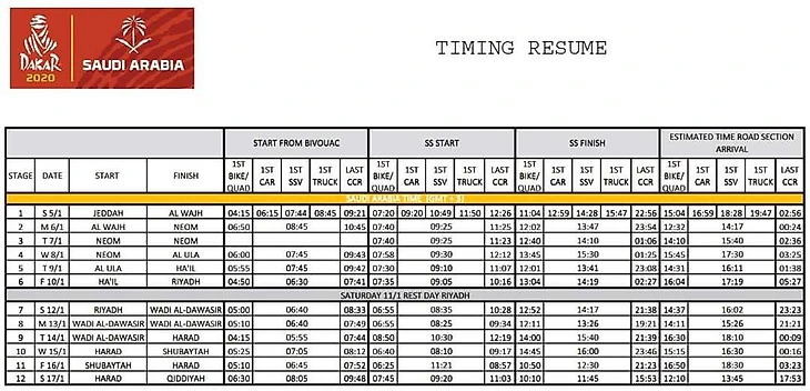 На сегодня известно время старта каждого зачета, а значит мы сможем предположить время старта наших на Дакаре. Учитывая один и тот же часовой пояс Москвы и Саудовской Аравии, становится гораздо проще следить за гонкой. В Америке все начиналось к 18:00 по МСК, теперь же все начнется около 8-9 часов утра.