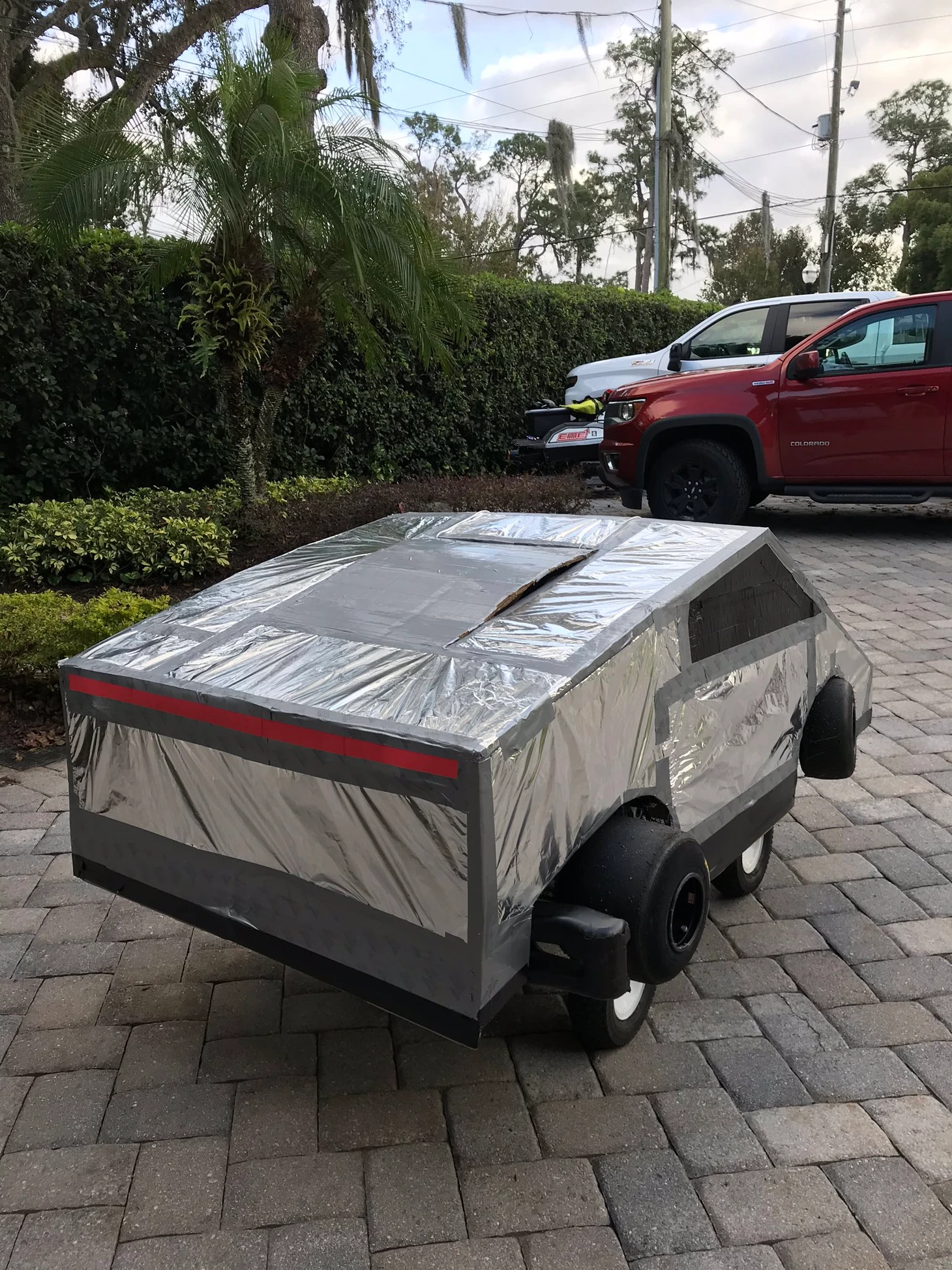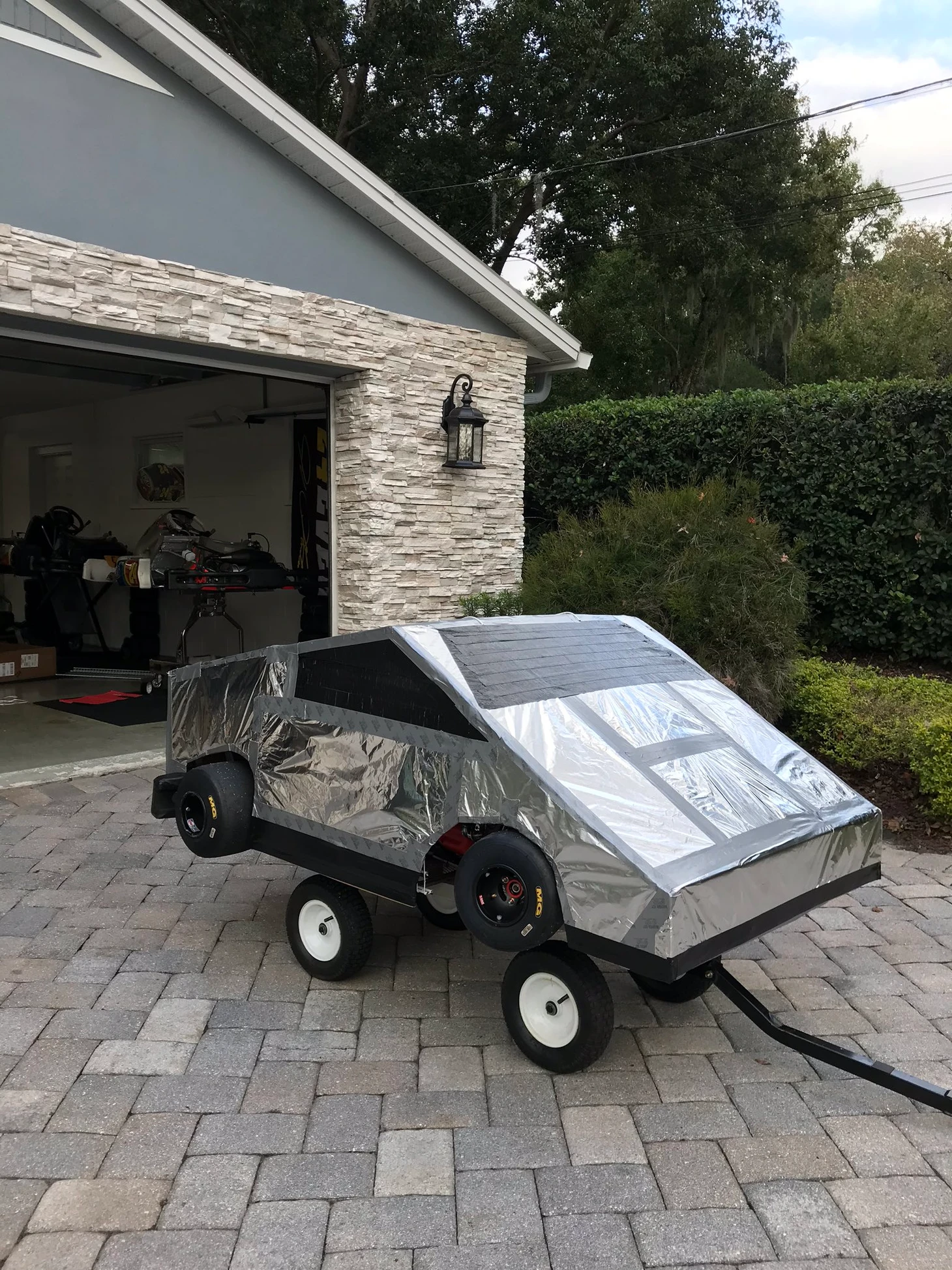 Гонщик-юморист собрал карт-пародию на нашумевший Cybertruck от Илона Маска. С помощью фольги и изоленты