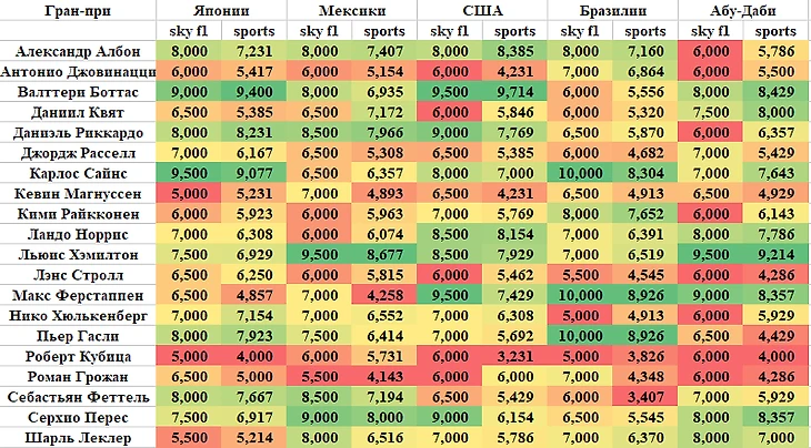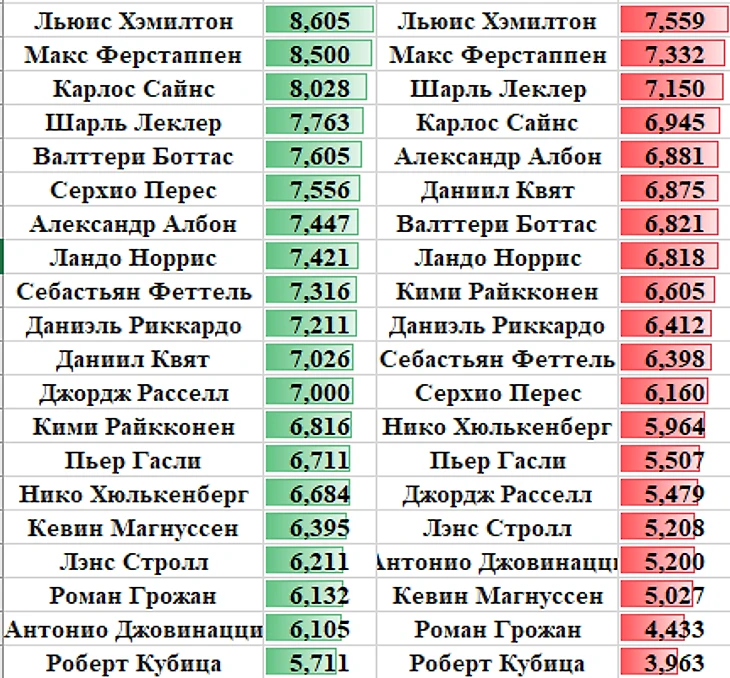 Эти результаты не учитывают Гран-при Австралии. Так бы Боттас прошел Леклера в рейтинге от sky. Это я к тому, что больше всех в этом году меня удивил Карлос Сайнс! Этот сезон совершенно вышел неожиданным. Вот он истинный пилот года! Среди новичков мне больше всего понравился Албон.