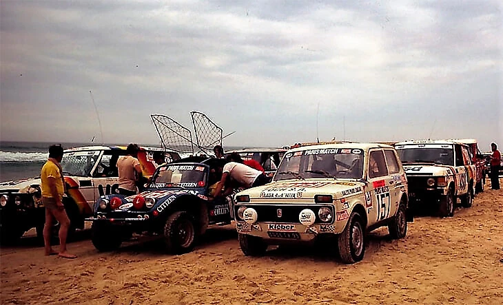 Дебютный «Дакар» проходил без экипажей поддержки: все припасы, воду, запчасти и палатки участники запихивали внутрь машины. Более того, сама по себе конструкция оставалась практически заводской: «Нивам» лишь увеличили бензобаки и доработали подвески. Даже двигатель остался старый – от «Жигулей»!