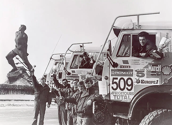 Да, Лакеев стал первым россиянином, финишировавшим на «Дакаре» в классе внедорожников, но титул «первого финишировавшего на «Дакаре» россиянина во всех классах» принадлежит не ему. Все из-за легендарного завода из Набережных Челнов – в 1988-м там решили повторить формулу успеха дилерской компании Пока и тоже войти со своей продукцией в мир ралли-рейдов. Несколько лет подготовки и обкатки техники на польском ралли «Ельч» и африканской «Обжектив Сюд» – и грузовики из Татарстана успели добраться до легендарного рейда еще до развала Советского союза.