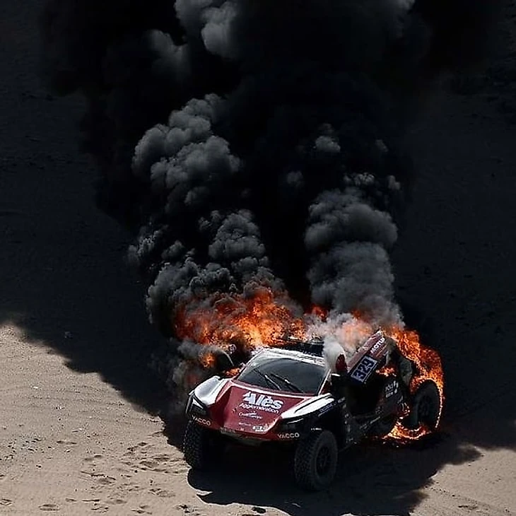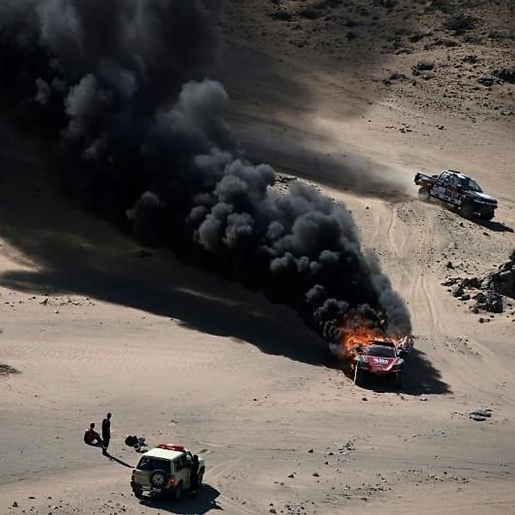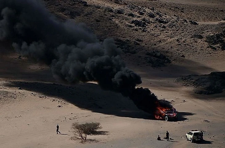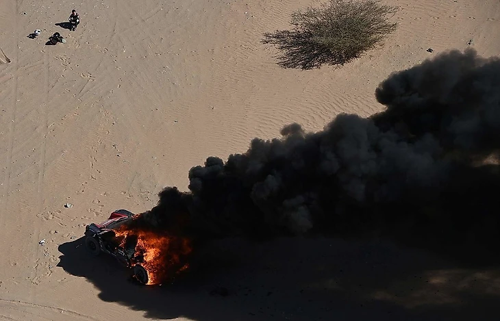 Но его заезд по Саудовской Аравии продлился всего 65 километров: затем внедорожник неожиданно вспыхнул. Целиком.