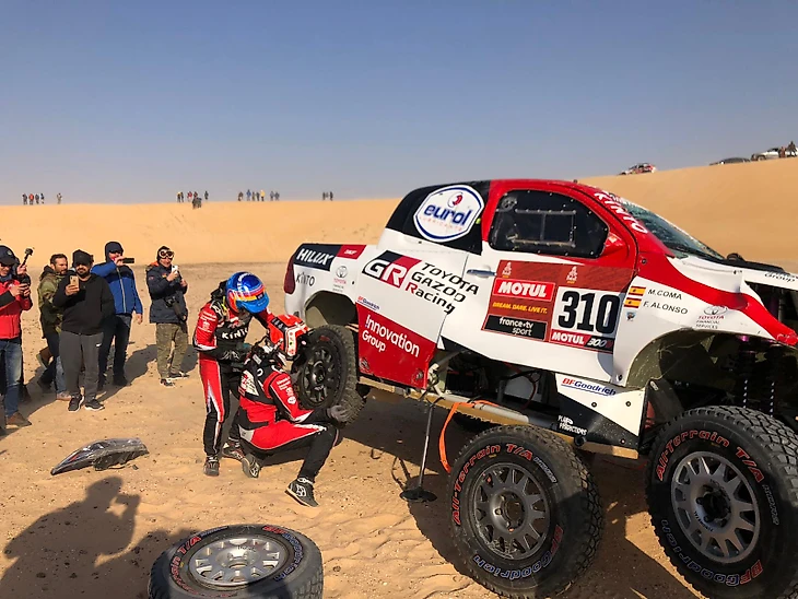 Алонсо на «Дакаре»: сам чинил машину, заблудился, едва убрался с дороги быстрого конкурента