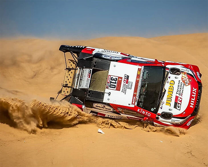 Но не стоит пинать Алонсо за криворукость: роковая дюна и правда довольно сложная. До Фернандо на ней чуть не разбился один из лидеров тотала и более опытный раллист Язид Аль-Раджи – выровнял машину в последний момент.