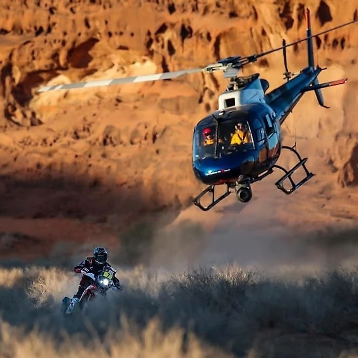 Операторы «Дакара» – изумительно смелые. Гонятся за участниками на вертолете в двух метрах от земли ради роскошного кадра
