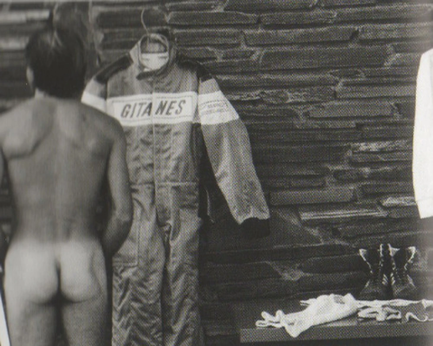 Классика провокационной рекламы из «Ф-1» 80-х: гонщик презентует спонсора обнаженным. На нем только шлем