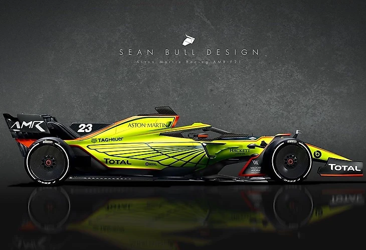 Вот, к примеру, стильная и яркая визуализация от Шона Булла вместе с возможными спонсорами на макете предполагаемой машины 2021-го.