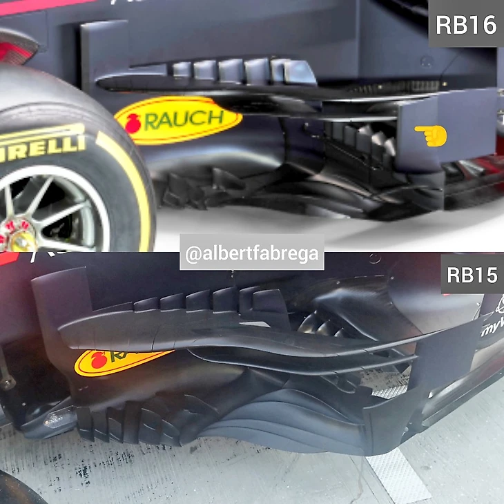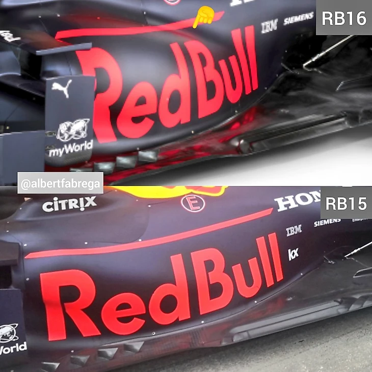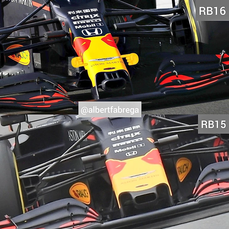 Крыло очень похоже на вариант, который «Ред Булл» тестировал в последних Гран-при сезона-2019. Похожее решение используют и в «Феррари».