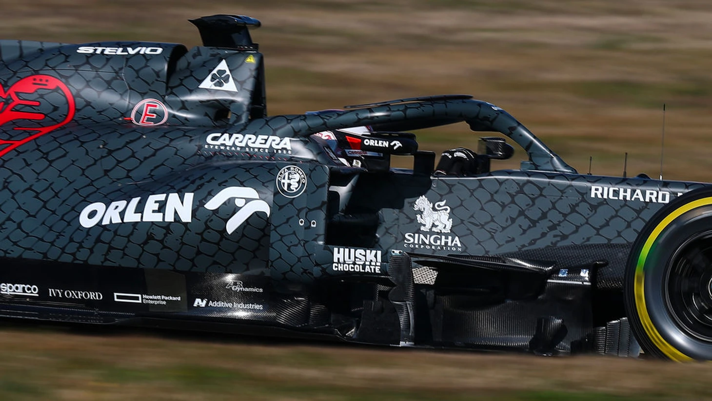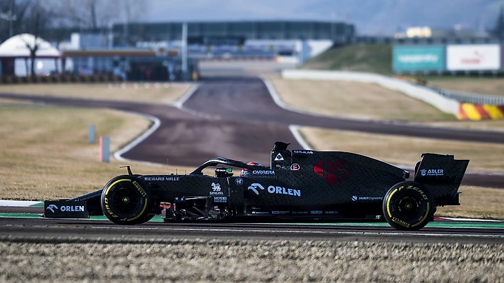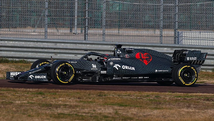 Стильная обкатка нового болида Райкконена: «Альфа Ромео» в змеином камуфляже и с огромной валентинкой на боку