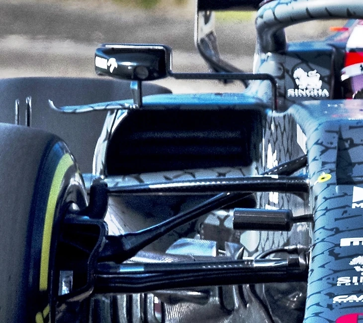 Тем не менее, даже с камуфляжной ливрей можно заметить несколько интересных моментов на машине. К примеру, экстремальное развитие «ноздрей» в носу по пути «Феррари» и «Ред Булл», а также продолжение использования экстремального оперения переднего антикрыла – такого больше никто не делает.