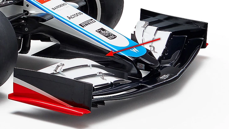Тренд на уменьшение носовых обтекателей (для производства более сильных завихрений и перенаправления их на дефлекторы) тоже прошел мимо «Уильямса».