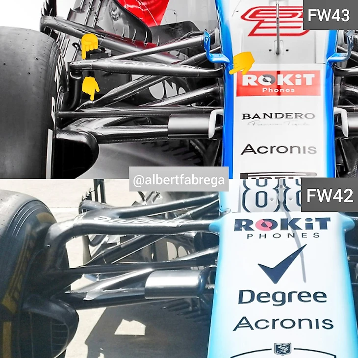 Серьезные изменения на этом по сути закончились. Пока конкуренты шагали вперед и развивали машины, «Уильямс» словно не работал в межсезонье, а просто привез пару обновлений между Гран-при. FW43 явно отстает от трендов и не обладает знаменательными фишками, теоретически способными исправить печальную ситуацию. Да, у машины должно стать немного больше прижимной силы, но скачка вперед не будет точно.