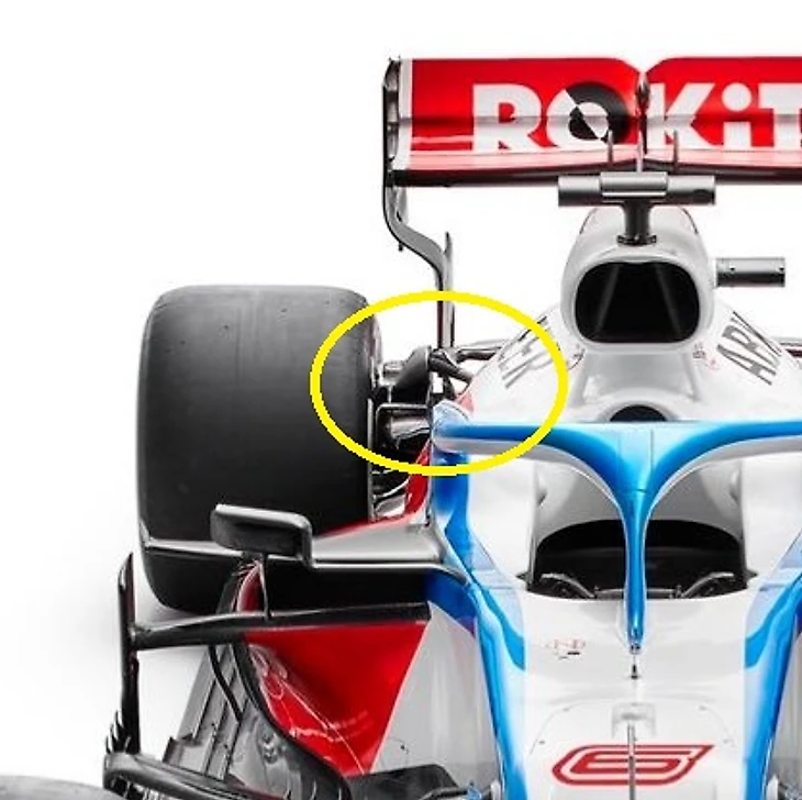 Фактически изменилась лишь форма: инженеры «Уильямса» отодвинули входное отверстие повыше и подальше к хвосту и срезали небольшой кусок сверху, сделав косой радиатор а-ля «Мерседес» чуть более выраженным.