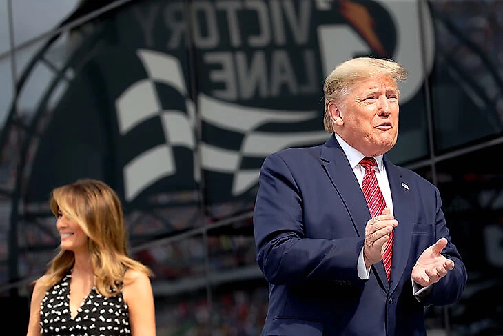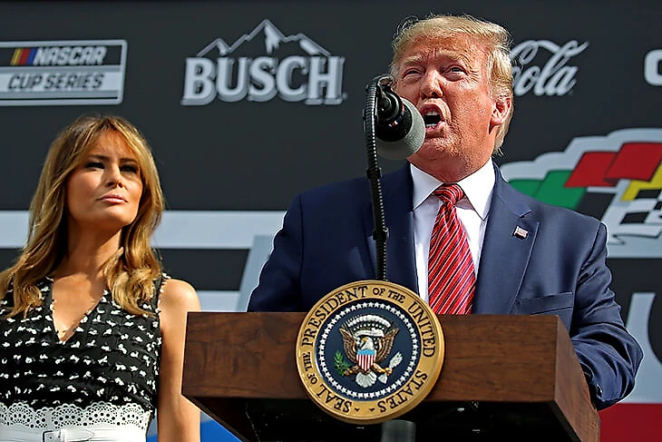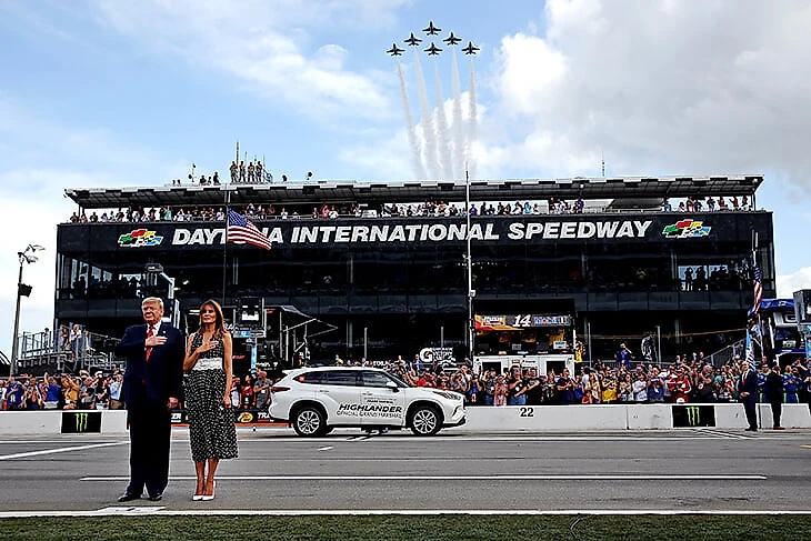 Трамп не просто приехал на гонку вместе с женой Меланией, а стал ее гранд-маршалом. Президент США выступил с небольшой речью, назвав всех присутствовавших патриотами и заявил: «Фанаты NASCAR всегда помнят: без разницы, кто победит в гонке. Самое важное – это Бог, семья и родина. Шины будут скрипеть, резина – плавиться, фанаты – ликовать, и великая американская гонка начнется».
