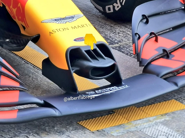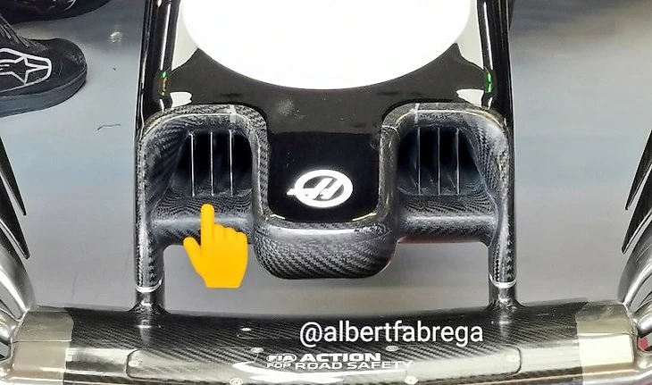 Зачем же нужны эти «ноздри»? Они служат входным отверстием для S-воздуховода – специальной трубки внутри носовой части болида, перенаправляющей потоки из-под выступающей части антикрыла к середине шасси. Он служит для снижения лобового сопротивления и потери энергии этого самого потока из-за контактов с поверхностью носа: воздуховод подхватывает едва сформированное завихрение, не давая ему уйти на нежелательные части корпуса, и экспрессом через носовую часть доставляет к запланированной точке.
