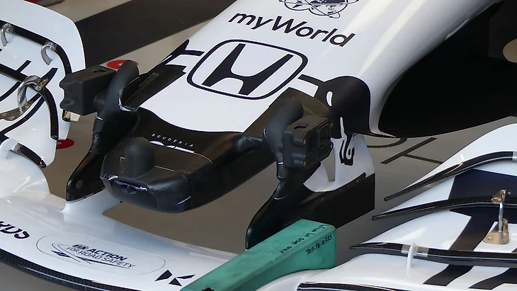 Болид «Альфа Таури» так и не получил «ноздрей» как у сестринской «Ред Булл», но удивил странными отростками на носу.