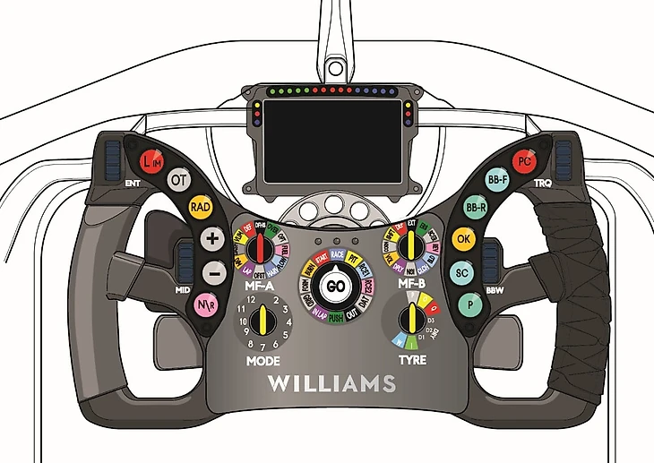 У остальной шестерки формат руля точно такой же. А у «Уильямса» он выглядит вот так.