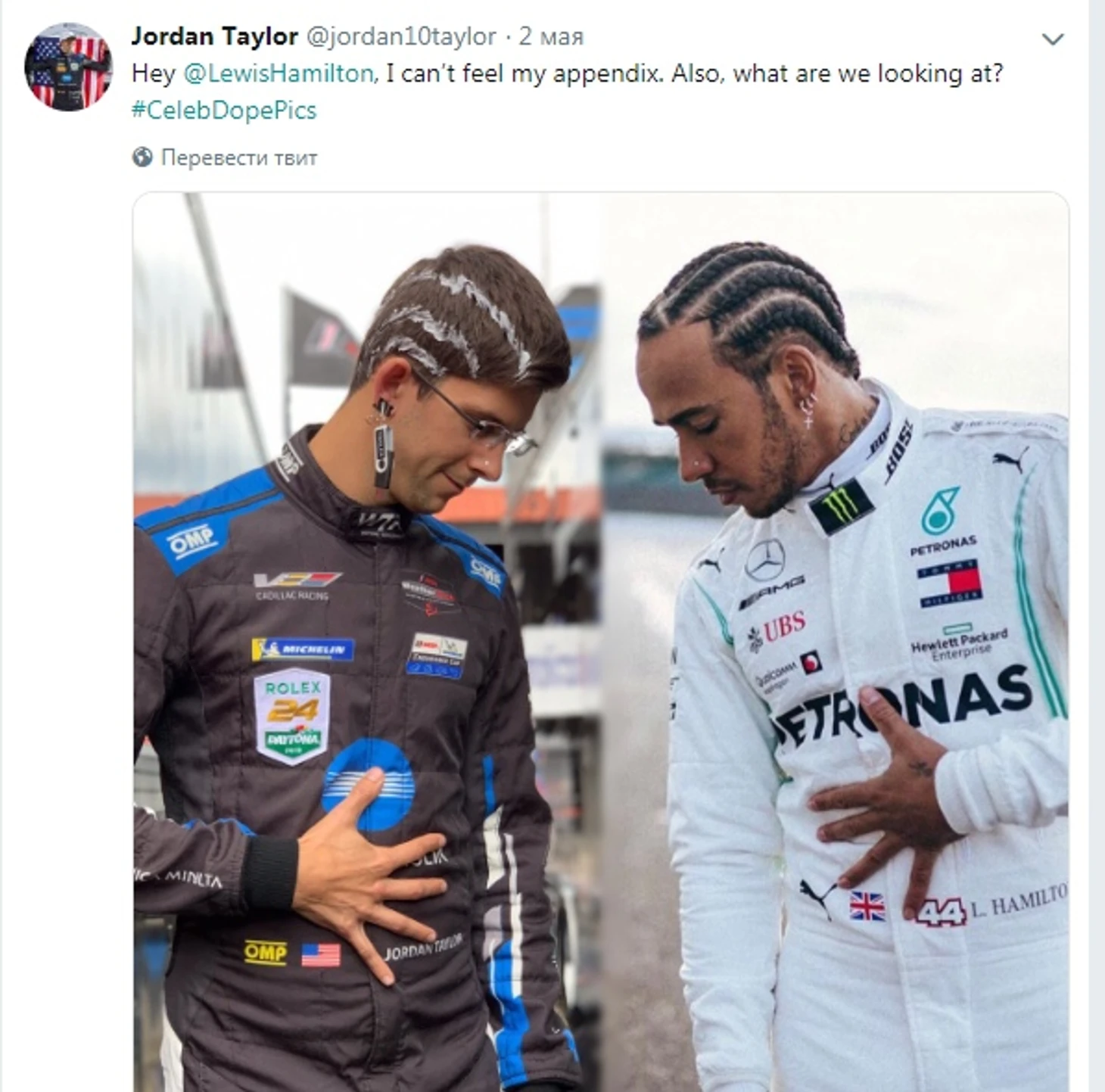 «Эй, Льюис Хэмилтон, я не чувствую свой аппендикс. И кстати, на что мы тут смотрим?»