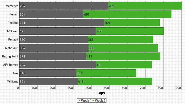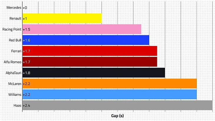 Сначала всех взбесил «Рейсинг Пойнт», который был очень похож на болид «Мерседеса» 2019 года. Но согласно данным больше всех впечатлила команда «Рено».