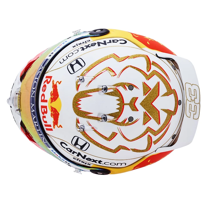 «Мне очень нравился прошлогодний дизайн, – честно признался Макс. – Сейчас стало немного больше белого и золотых элементов, изменения коснулись и льва в верхней части шлема. Он был выполнен в красном с небольшим добавлением золотого, теперь – в золотом с добавлением красного».