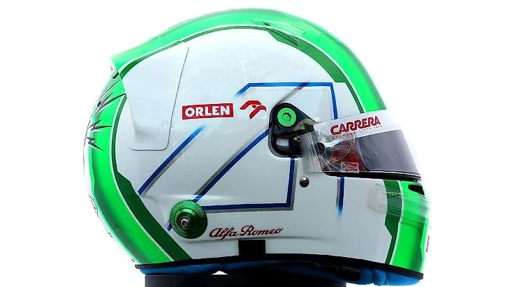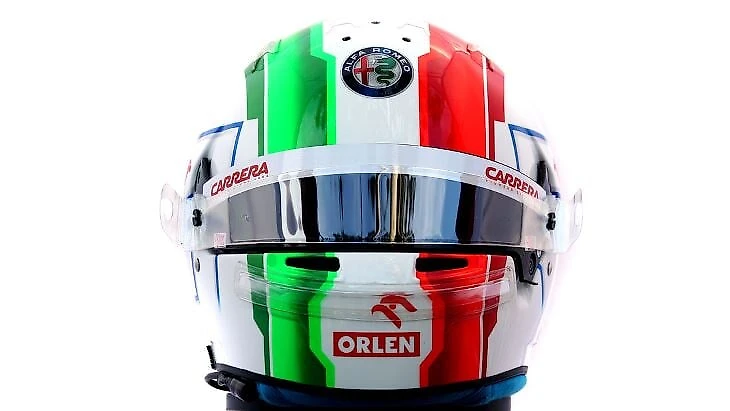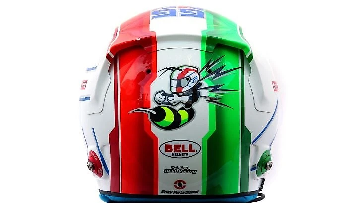 Антонио Джовинацци, как в прошлом сезоне, взял за основу итальянский флаг, но заменил черные боковины шлема белыми.