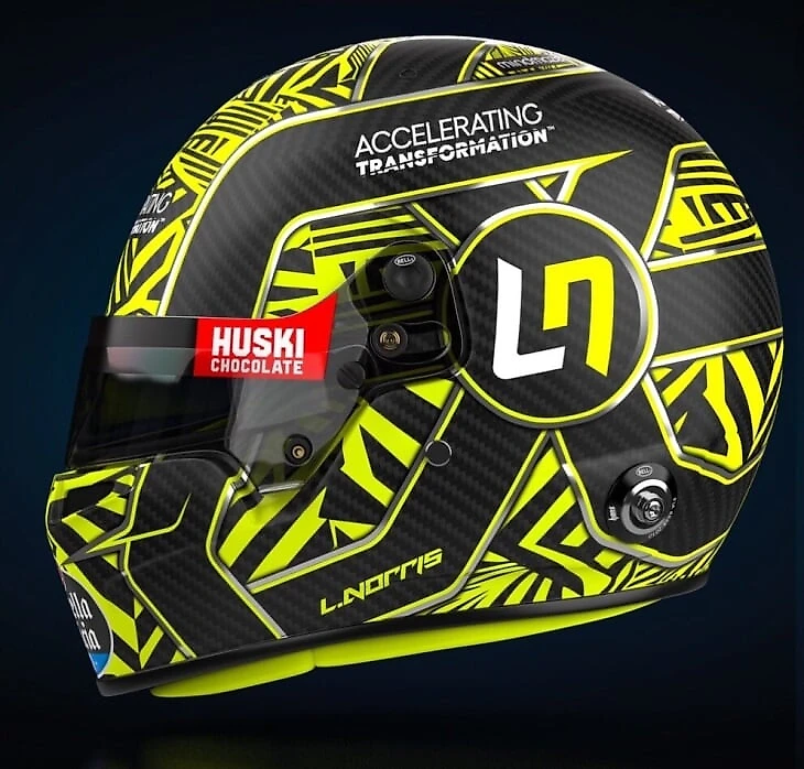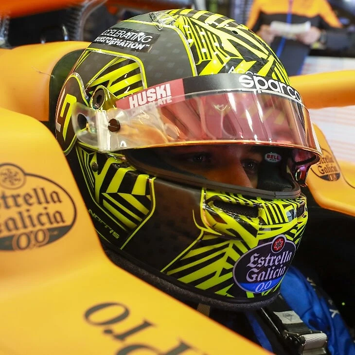 Дизайн шлема Ландо Норриса стал чище и чуть проще – едва заметные изменения оттенков, но все тот же узнаваемый стиль.