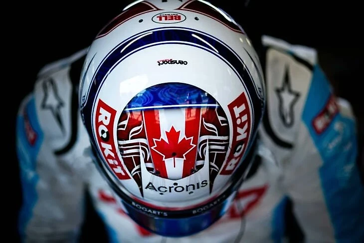 Еще один канадский патриот Николя Латифи также не обошелся без кленового листа в верхней части шлема и на логотипе.