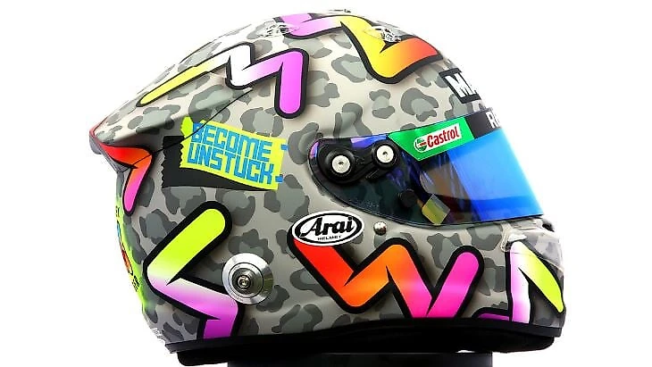 Несмотря на разнообразие окрасок, у Феттеля есть свой стиль: преобладание белого и немецкий триколор от подбородка до затылка.