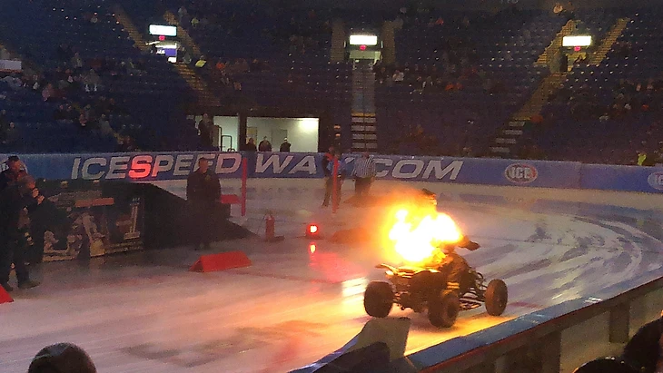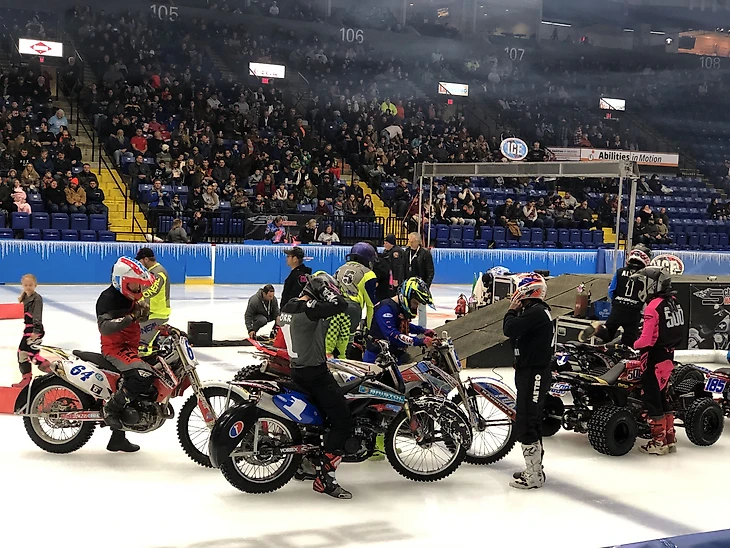 Всего в тот вечер на “Сантандер Арену” выходило целых 6 видов техники. Основными, конечно, были заезды высшего дивизиона (мотоциклы и квадроциклы), но также принимали участие мини-мото (миниатюрные копии кроссовых байков, но с шипованной резиной) и заднеприводные карты (которые очень популярны среди любителей грунтовых овалов). Не обошли вниманием и детей, которые также гонялись на квадроциклах (правда, трехколёсных) и мотоциклах. Благодаря большому количеству различных дивизионов на трибуне ты не мог заскучать - экшена хватало каждую минуту.