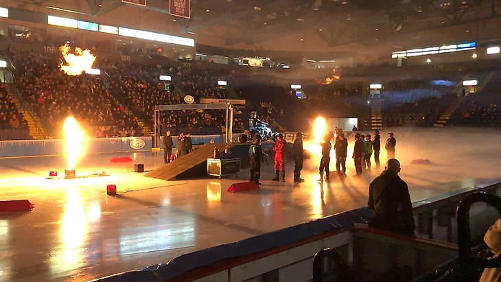 Что касается самих гонок в Рединге, то они прошли с присущим многим американским соревнованиям огоньком - в прямом смысле этого слова. Началось все с представления пилотов, каждый из которых заезжал на импровизированный пьедестал, после чего вся арена озарялась светом от пламени, которое вырывалось из недр ледовой арены. Что-что, а шоу здесь делать умеют, причем, это касается даже таких региональных соревнований.