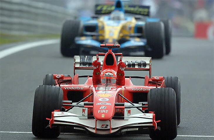Маневр, достойный победителя и чемпиона – Шумахер в итоге приехал первым на финиш и сравнялся с Алонсо по очкам. Но в дальнейшем удача от него отвернулась: в Японии на «Феррари» умер мотор, а Фернандо выиграл – ему оставалось только добраться до финиша в топ-8 на последней гонке сезона.