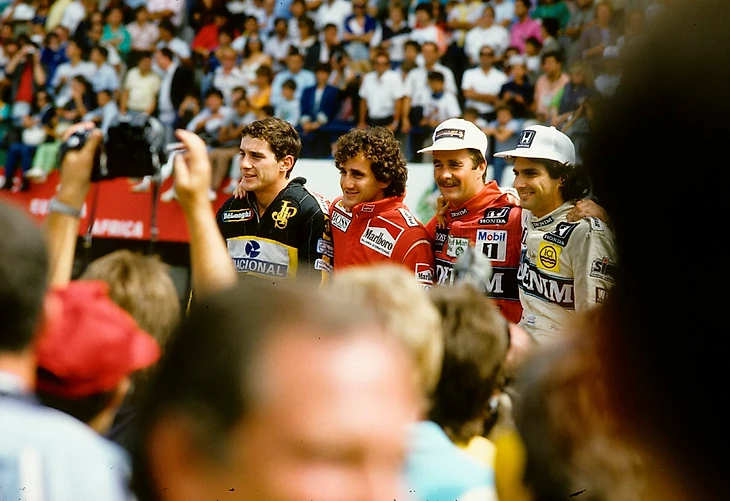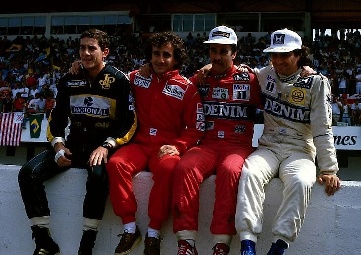 Айртон Сенна, Ален Прост, Найджел Мэнселл и Нельсон Пике. Гонщики, каждый из которых в одиночку мог стать олицетворением целой эпохи в «Формуле-1», выступали в одно время и отчаянно сражались друг с другом за победы в гонках и чемпионатах. Неудивительно, что их совместная фотография стала настоящей классикой автоспорта.