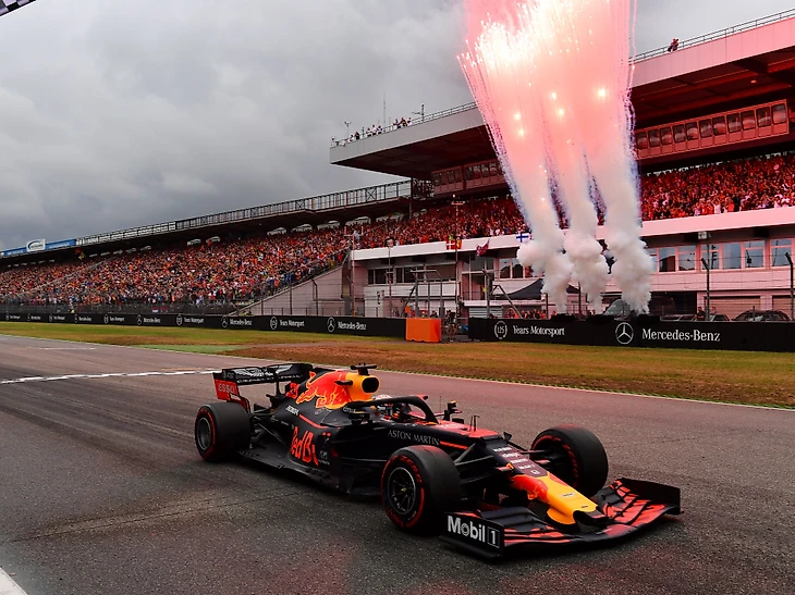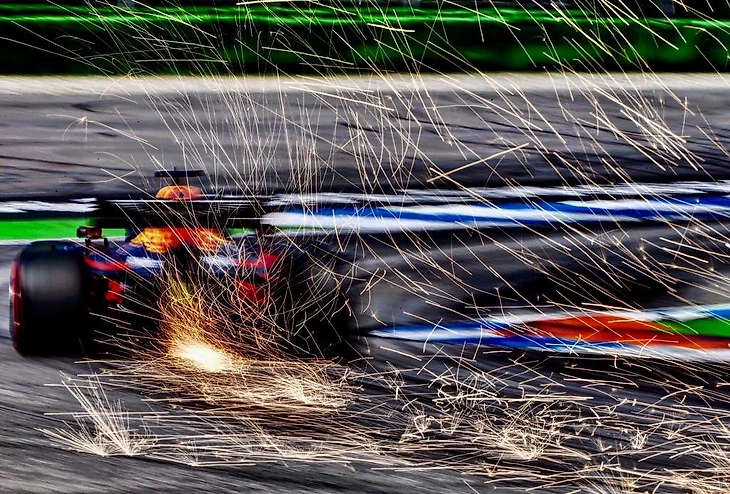 Переходим к прошлому году. Я не знал, что выбрать, просмотрел весь сезон и не нашел фотографии, которая была бы мне интересна. Но потом, в Германии, я был на квалификации в первом повороте, и Макс высек кучу искр на быстром круге. Пилоты сперва проезжают прогревочный круг, а потом, в первом повороте, машина задевает днищем асфальт. Я скинул скорость шаттера, прицелился в это конкретное место и сделал эту фотографию в одной двадцатой секунды. Была куча искр на этом круге.