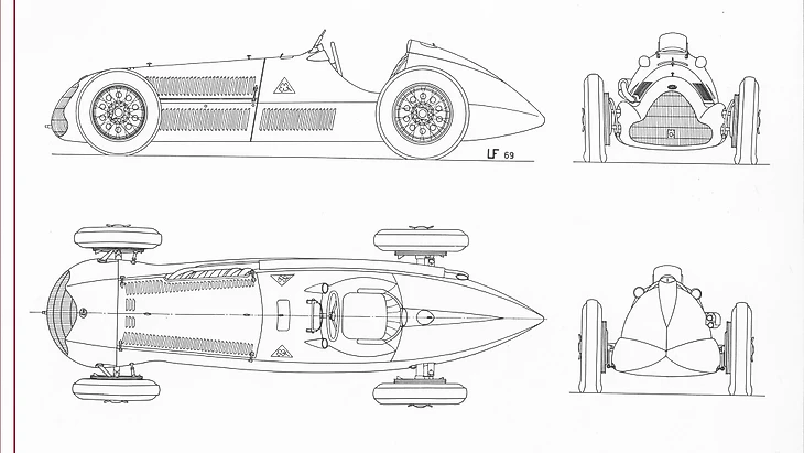 Коломбо, вдохновленный «Авто Юнионом», изначально хотел строить машину с расположением двигателя посередине. Но Энцо настаивал: «Бык должен тащить телегу». Так что в итоге машина стала переднемоторной.